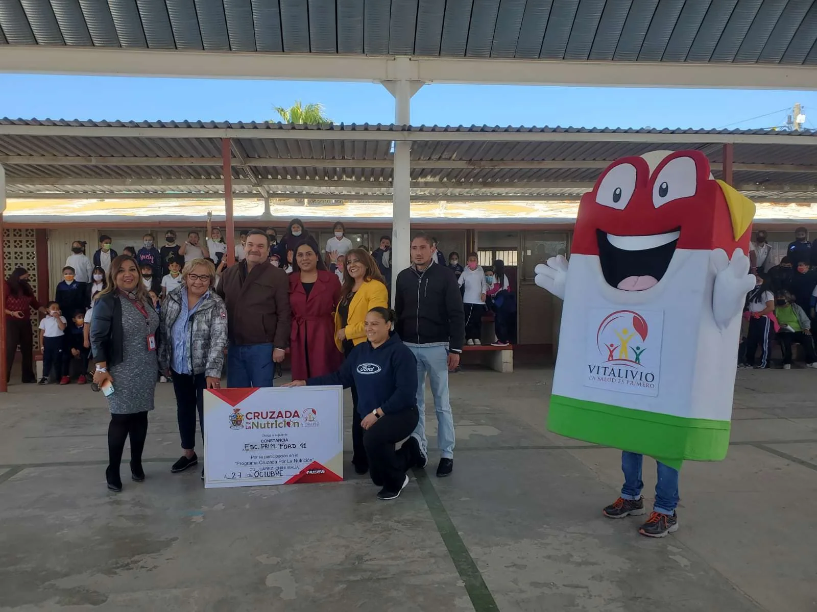 El día día 27 de octubre 2022 se acudió a la esc. Primaria Ford 91 ubicada al poniente de la ciudad en la colonia cazadores juarenses con el programa Cruzada Por La Nutrición a través de la Dirección General de Centros Comunitarios Municipales, donde se llevó a cabo un taller masivo de nutrición, psicología y activación física para más de 150 alumnos, el cual cumple el propósito de establecer estrategias de proximidad social para coadyuvar a la solución de problemas contra la epidemia generada por el virus Covid-19.